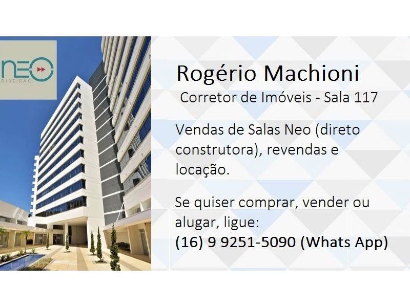 Vendas de salas comerciais no edifício NEO (direto construtora ou terceiros), revendas e locações.